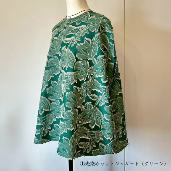 ①先染めカットジャガード(グリーン)